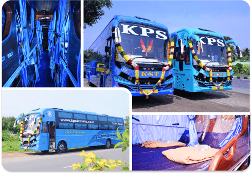 KPS Travels We provides bus services between various locations across TamilNadu. Being an expert on the other transportation sectors, we are able to provide excellent bus service. Take a ride on our Sleeper bus and feel the awesomeness. We are working to extend our services to various other destinations in near future.